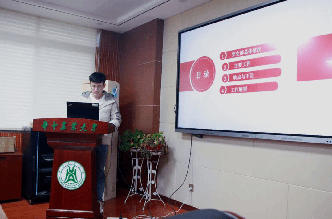 油菜机械化生产技术与装备研究生第一党支部书记张季钦同志先后从党建组织建设、支部凝聚力建设、反省自查自纠党风建设三个方面汇报了过去一年支部开展的工作。他提出,要在上级党组织的带领下继续发扬求真务实、真抓实干的作风,不忘初心、牢记使命、脚踏实地地推动支部整体工作再上新台阶,发挥研究生党支部的先锋模范作用。