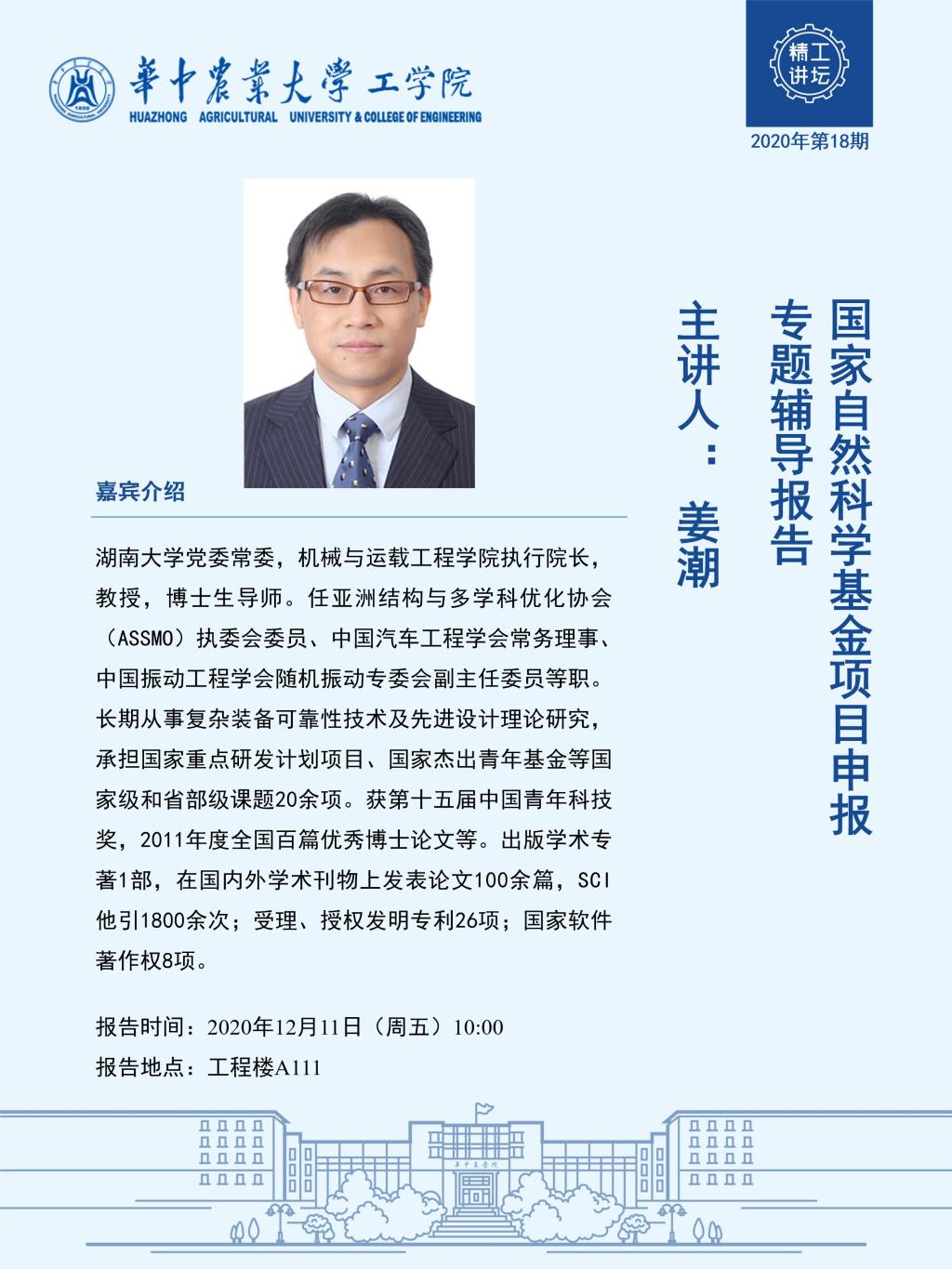 精工讲坛2020年第18期:国家自然科学基金项目申报专题辅导报告