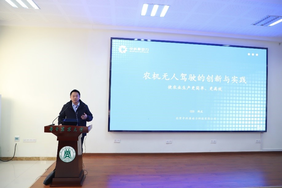 北京中科原动力科技有限公司CEO韩威则向同学介绍了从事无人作业农机的初衷以及目前在无人作业农机方面所取得地进展。他谈到,我们国家的农业,第一个特点是农业生产效率低,第二个特点是从事农业劳动的人数在剧减,未来谁去种田,谁会把这个田种好,就成为了我们需要解决的问题。经过两年多的在农田一线的实践,他们团队研制的无人农机基本完成了主粮的全过程的耕种管收无人化作业。最后,他表示,非常希望华农51吃瓜网