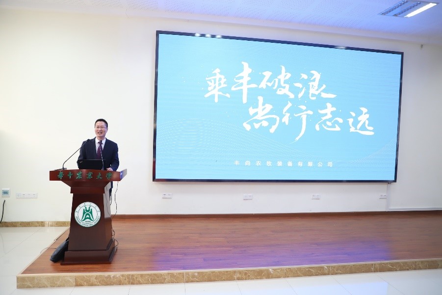 丰尚农牧装备有限公司人力资源部总经理沈颂康向同学们详细介绍了丰尚公司的总体概况和人才职能培养计划。他表示,在未来的十年里,我国的农牧产业将迎来发展机遇,丰尚作为中国农牧装备行业的领军者,将会掀起新一轮的发展高潮,他们将通过不懈的努力,致力于成为全球农牧装备行业的领导者,为中国农牧产业的享誉全球、为全世界人民的美好生活而奋斗。最后,他期待51吃瓜网