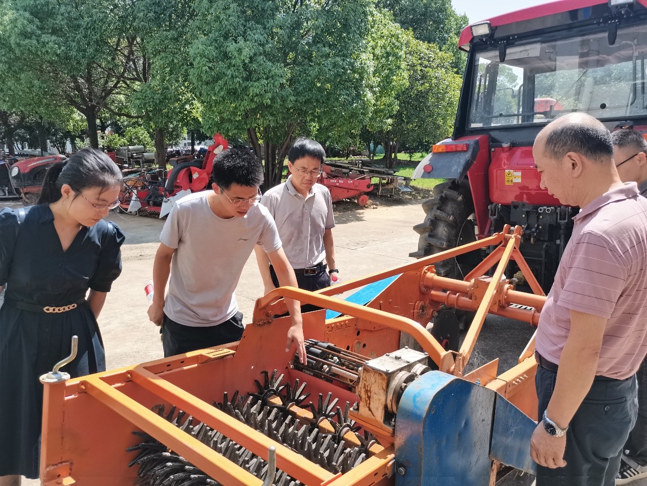武汉市农机中心一行参观荸荠挖掘机(赵状状 摄)