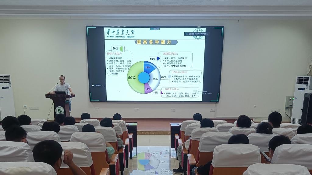 入学教育结束后,农业生物质增值化技术与装备团队还组织了新生见面会,介绍团队的研究方向和未来展望。研究生新生一一上台自我介绍,以便更快更好融入团队。