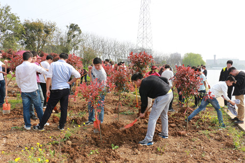 植树现场,热闹非凡。广大党员干部分工协作,挖苗扛苗,挥锹铲土,扶苗踏实,挖坑、栽树、盖土、浇水等各环节都精心对待,栽得认真,干得卖力,整个植树活动现场一片热火朝天的劳动景象。不管男生还是女生,他们都很认真的对待这次活动,尽管那片土地的地质有一点硬,树坑很难挖,很多男生因为帮忙挖树坑手都磨出水泡来了,但是没有一个人抱怨过。因为他们知道他们不仅仅是在为我们国家作贡献,同时也是在为他们自己生长、生活的环境打基础。活动持续开展到下午四点,野芷湖畔,微风习习下,同学们辛劳的汗滴滑入满载希望和爱心的土壤中, 纵然土中有很多石块,天气很热,大家依然齐心协力为小树创建了一个舒适的窝,并为它浇灌生命之水,党员们可以给自己种的树命名,为自己种的树赋予更多意义。