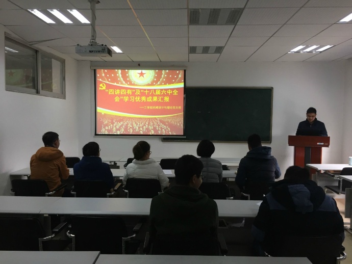 研究生机械设计与理论党支部组织支部党员和预备党员举行了学习“四讲四有”及十八届六中全会精神优秀成果汇报会。会议由机械设计与理论党支部支部书记李泽海主持,支部全体党员和预备党员参加了展示和汇报会。