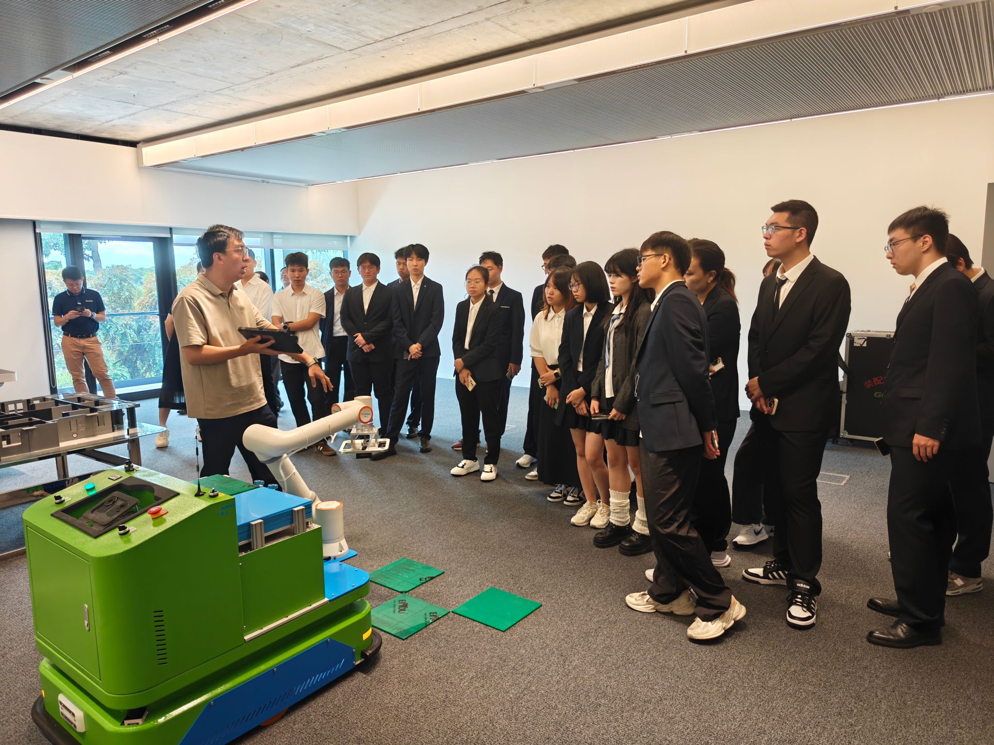 8月15日上午的科技企业 THE GEAR 参访,则让同学们近距离接触产业前沿。在公司研发中心,精密制造的六轴机械臂、基于物联网的智能仓储系统吸引着大家的目光。当工程师演示机械臂以高精度水平完成地板铺设,机械专业的同学们尤为兴奋, 公司领导人分享从实验室到企业的创业经历,以及 “工程创新要敢于跨界融合” 的理念,让机械专业的同学们深受启发。
