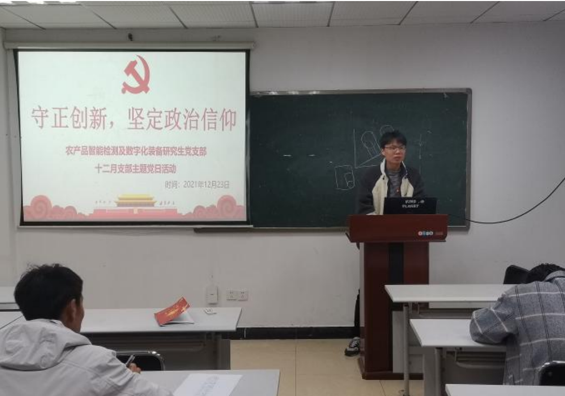 农产品智能检测及数字化装备研究生党支部在工程楼B620会议室开展以“守正创新,坚定政治信仰”为主题的党日活动。