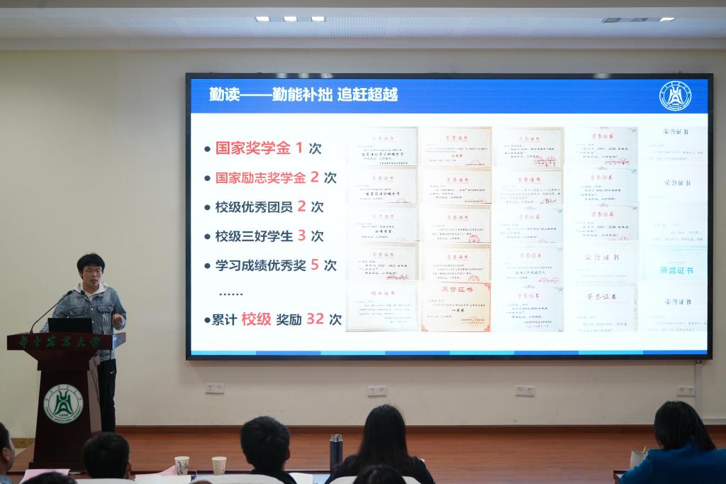大学生标兵获得者能动1801班张子航为大家分享他的学习经验,从当“大学生标兵”观众到真正成为“大学生标兵”获得者,他用实际行动实现了自己的目标。学习方面,他善于规划、总结反思、笃志好学;科研方面,熟能生巧,巧能生精;实践方面,躬行实践,乐于奉献。“因为我的大学,成就了现在的我,他教会我要做一个,立大志、明大德、成大才、担大任的华农人!”青衿之志,履践致远;云程发轫,万里可期!这是张子航给大家的寄语,希望大家能有一个无悔的大学时光。