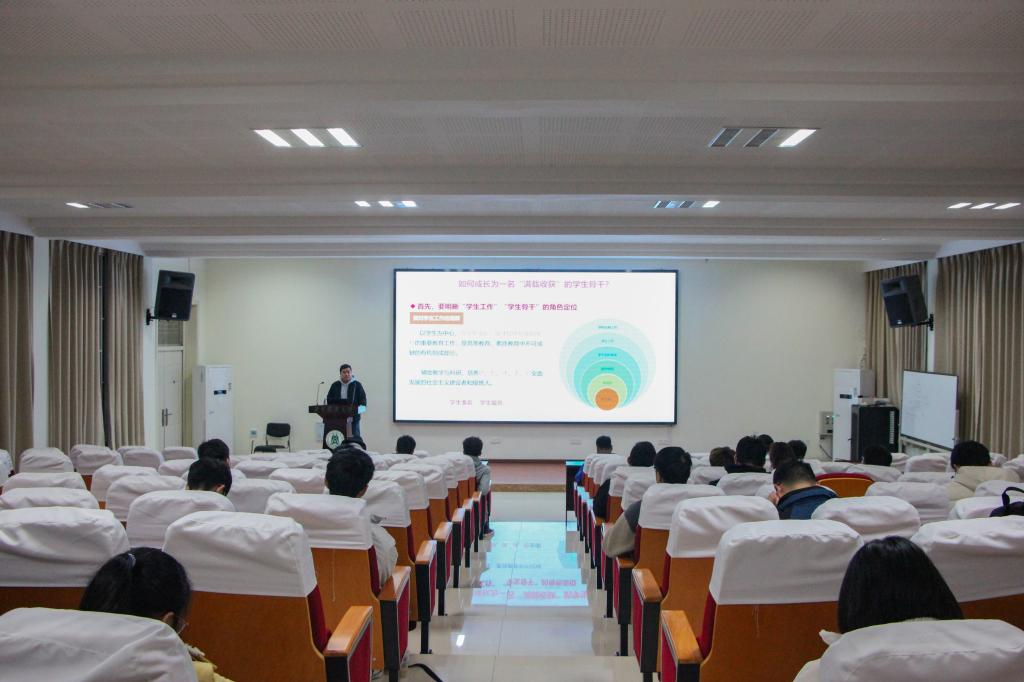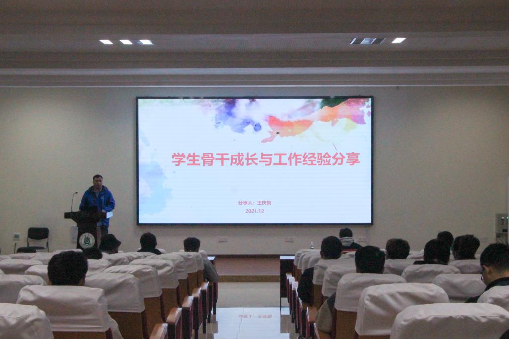 在工程楼A111报告厅举办“学生领导力提升计划”系列培训,2020级硕士研究生王庆鲁分享了学生骨干成长与工作经验。