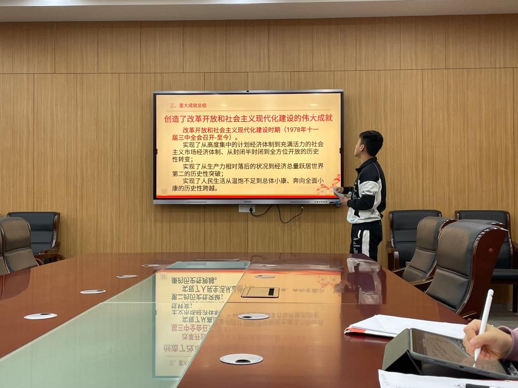 蒙哲靖同志领学党的十九届六中全会精神时表示,十九届六中全会重点研究并全面总结了党的百年奋斗的重大成就和历史经验,我们作为研究生党员,应积极响应中央号召,更加紧密地团结在以习近平同志为核心的党中央周围,以史为鉴、开创未来,埋头苦干、勇毅前行,为实现第二个百年奋斗目标、实现中华民族伟大复兴的中国梦而不懈奋斗。