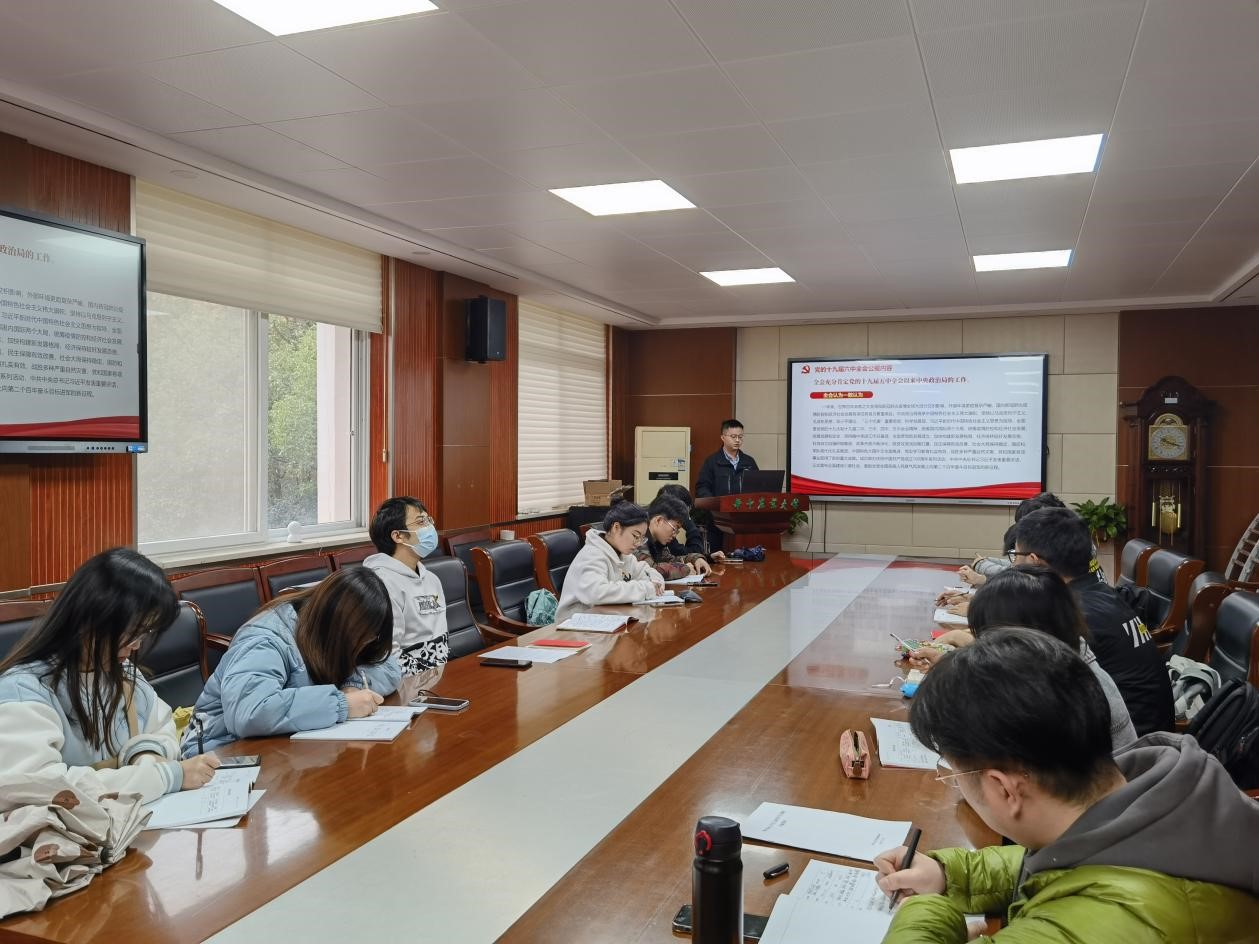 本科生党支部在工程楼A201会议室召开会议,共同学习党的十九届六中全会精神,会议由党建办副主任牛彦东主持,辅导员周熙老师和各支部支委共同参加此次会议。