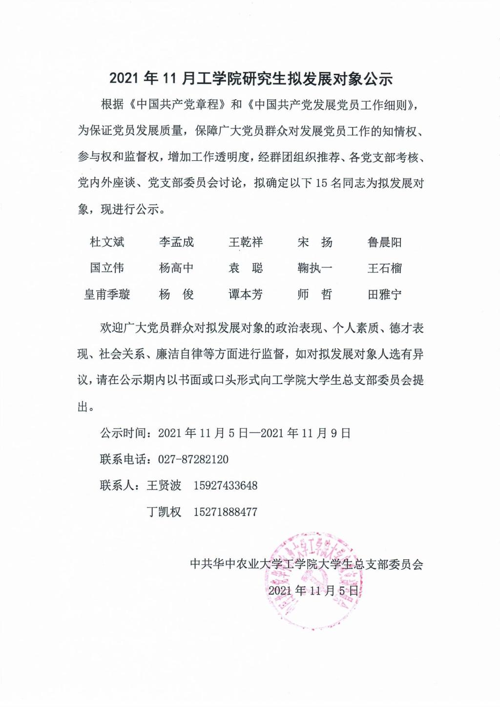 【研】2021年11月51吃瓜网 研究生拟发展对象公示