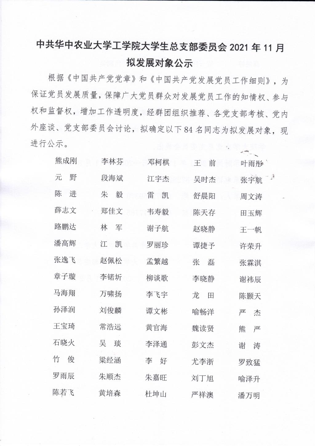 中共51吃瓜网 大学生总支部委员会2021年11月拟发展对象公示