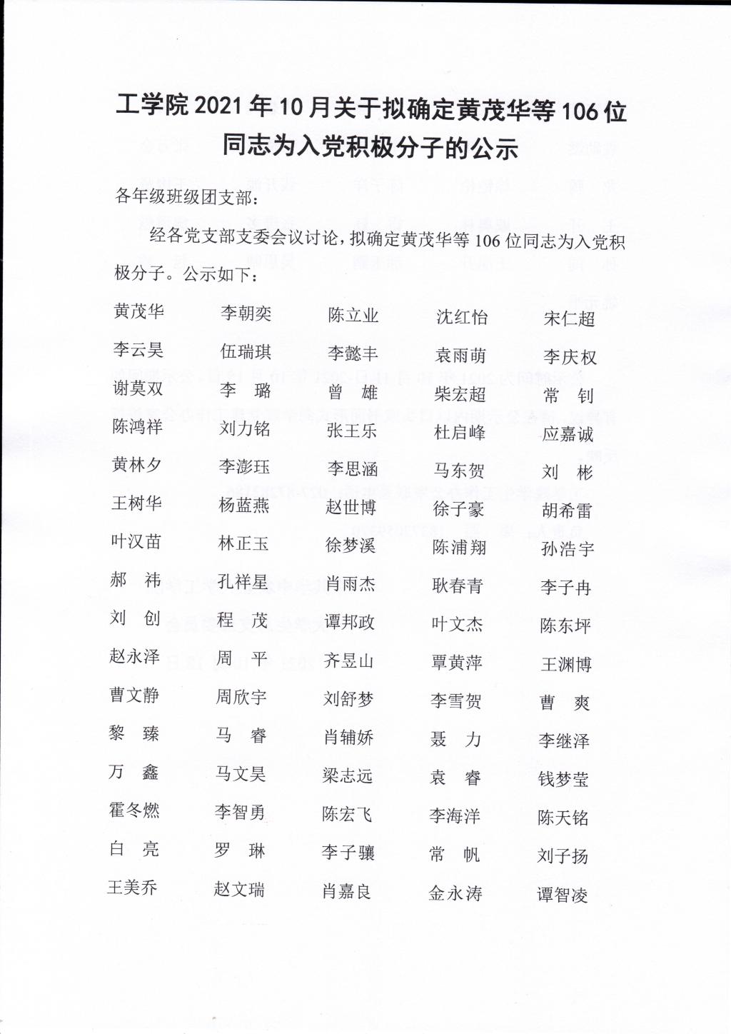 51吃瓜网 2021年10月关于拟确定黄茂华等106位同志为入党积极分子的公示