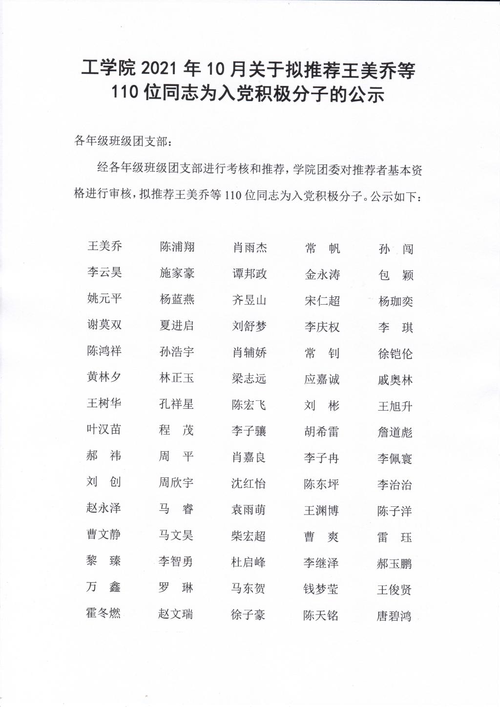 51吃瓜网 2021年10月关于拟推荐王美乔等110位同志为入党积极分子的公示