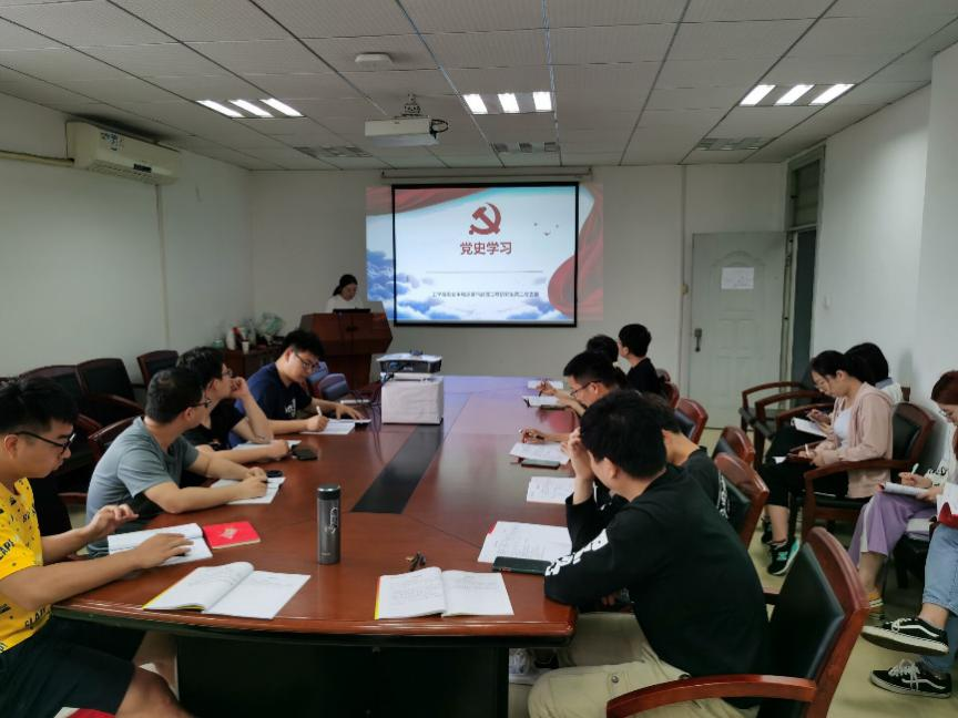 活动开始后,全体党员在组织委员刘婷婷带领下重温入党誓词并按期缴纳了当月党费。随后由马克思主义学院的杜彧坤同志带领全体支部成员学习了百年中共党史的光辉历程,杜彧坤同志从1921年党的建立开始讲起一直到这次新冠的疫情,讲述了党波澜壮阔的壮丽史篇,在总结时她讲到:“开展党史学习教育的一个重要目的就是要通过学习党的百年历程坚定理想信念,用党的光荣传统和优良作风砥砺政治信仰,用党的历史经验和伟大成就鼓舞精神斗志,用党的信仰信念和革命精神凝聚力量。”