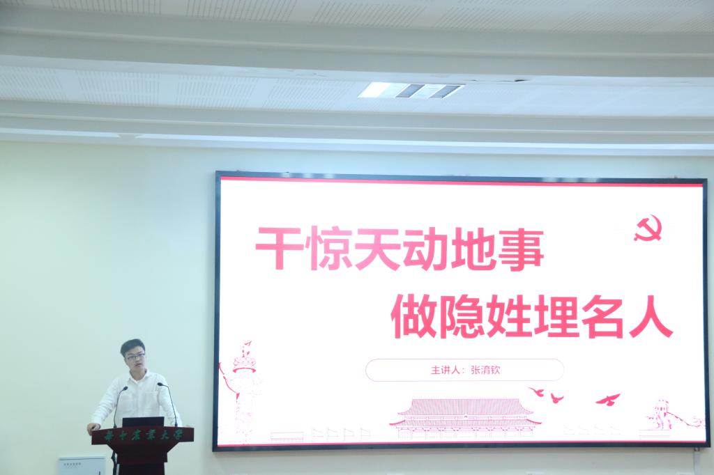 为国家苦行,为科学先行。宋扬同学向我们讲述了建国初期为打破外国对于国内地理数据垄断,国测一大队同志们不惧险恶的环境,将测量觇标矗立于珠穆朗玛峰顶的故事。牙膏吃光了,墨水喝干了,吴昭璞在队伍遭遇断水断粮危机时,选择自己一个人留下来看守进口仪器和宝贵资料,最终壮烈牺牲。