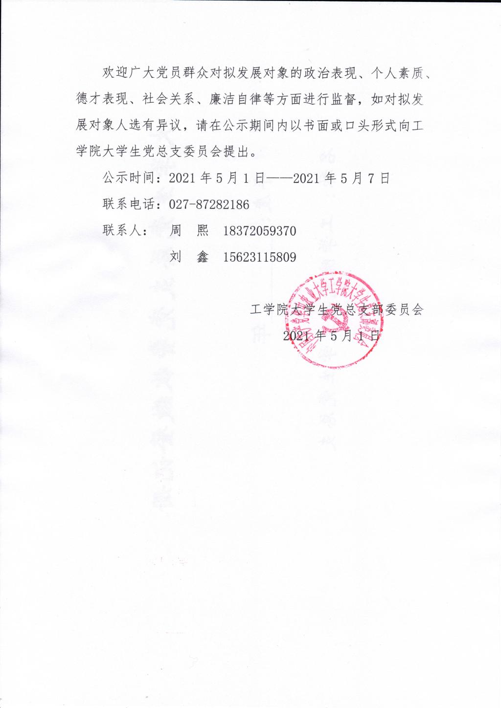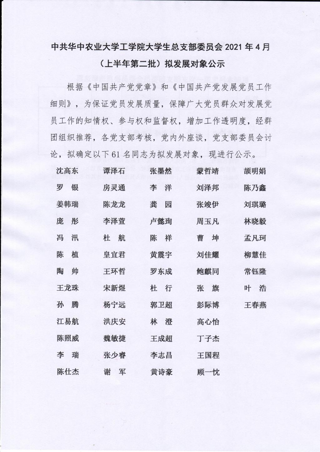 中共51吃瓜网 大学生总支部委员会2021年4月(上半年第二批)拟发展对象公示