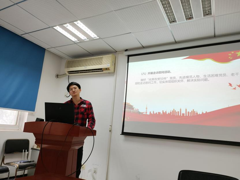 庆祝中国共产党成立100周年活动实施方案》,他从总体要求、活动内容、工作要求三个方面介绍了《方案》内容。他提到,党史学习教育既是我们全年的工作重点,同样也是庆祝中国共产党成立100周年活动的重要组成部分,我们要以优异的学习成绩来迎接建党100周年。他进一步谈到,学校将在下一步以加强组织领导、突出思想内涵、严肃纪律要求的工作要求有序开展各项庆祝活动,希望各位党员同志能够带头参与到庆祝活动中,努力营造良好氛围。