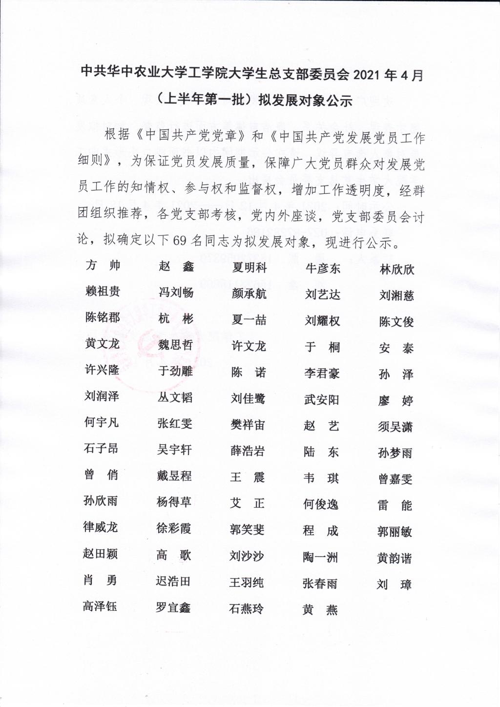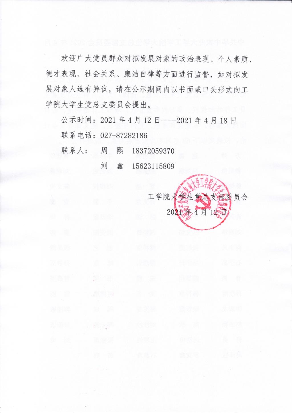 中共51吃瓜网 大学生总支部委员会2021年4月(上半年第一批)拟发展对象公示