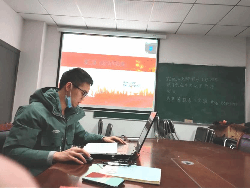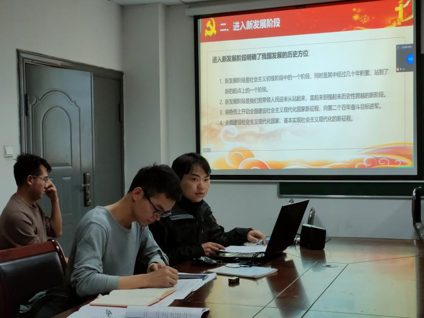 农业机械化工程与装备研究生第二党支部在工程楼B201线上线下同步开展了题为“学懂弄通新思想 勤读力耕新担当”的主题党日活动。活动由支部书记张帅主持,离校党员通过线上视频会议参与活动。