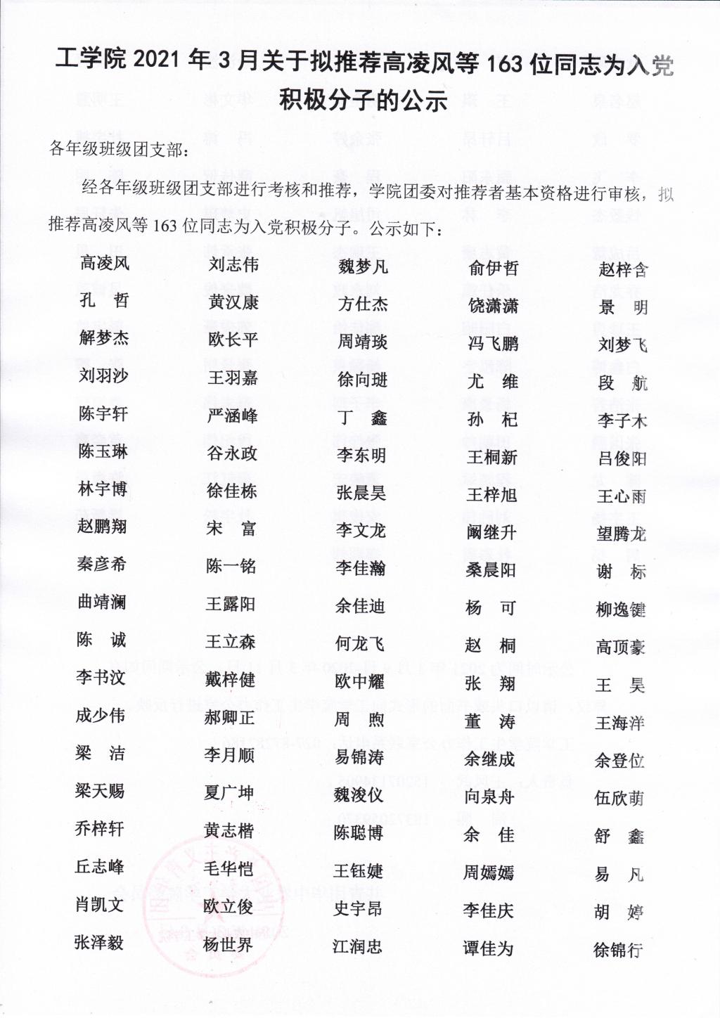 51吃瓜网 2021年3月关于拟推荐高凌风等163位同志为入党积极分子的公示