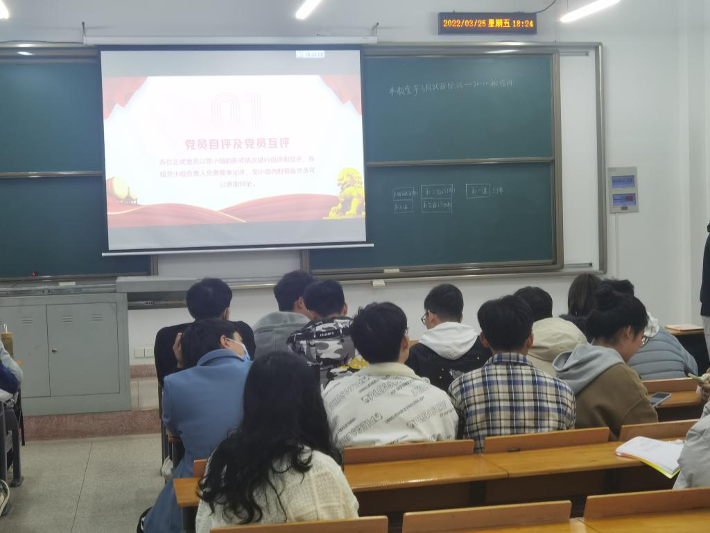 最后,支部正式党员进行民主评议,同志们就是否具有坚定的共产主义信念、能否坚持四项基本原则、是否切实地执行党的决议、严守党纪政纪国法、坚决做到令行禁止等五个方面展开了批评与自我批评。至此,会议圆满结束。
