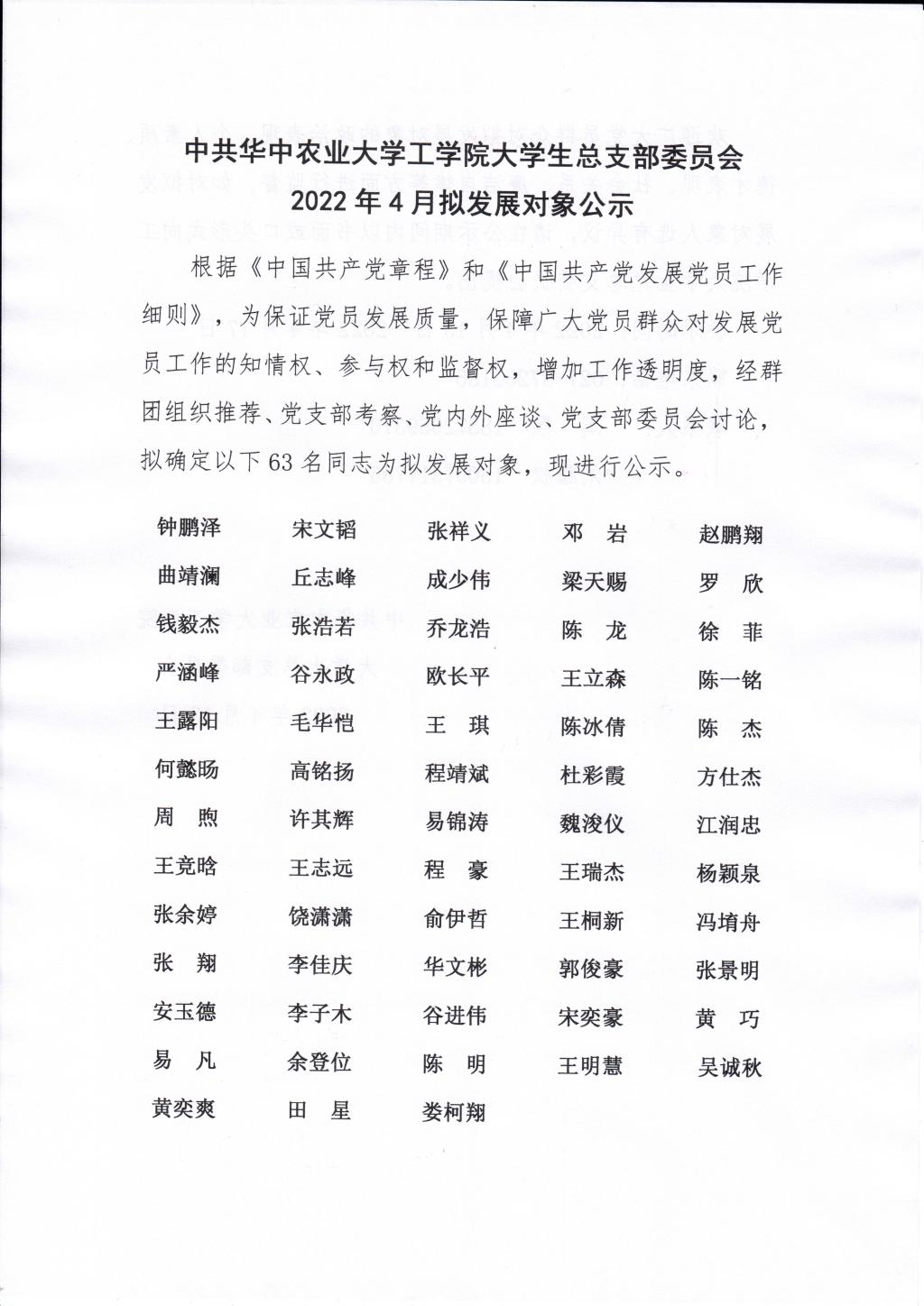 中共51吃瓜网 大学生总支部委员会2022年4月拟发展对象公示