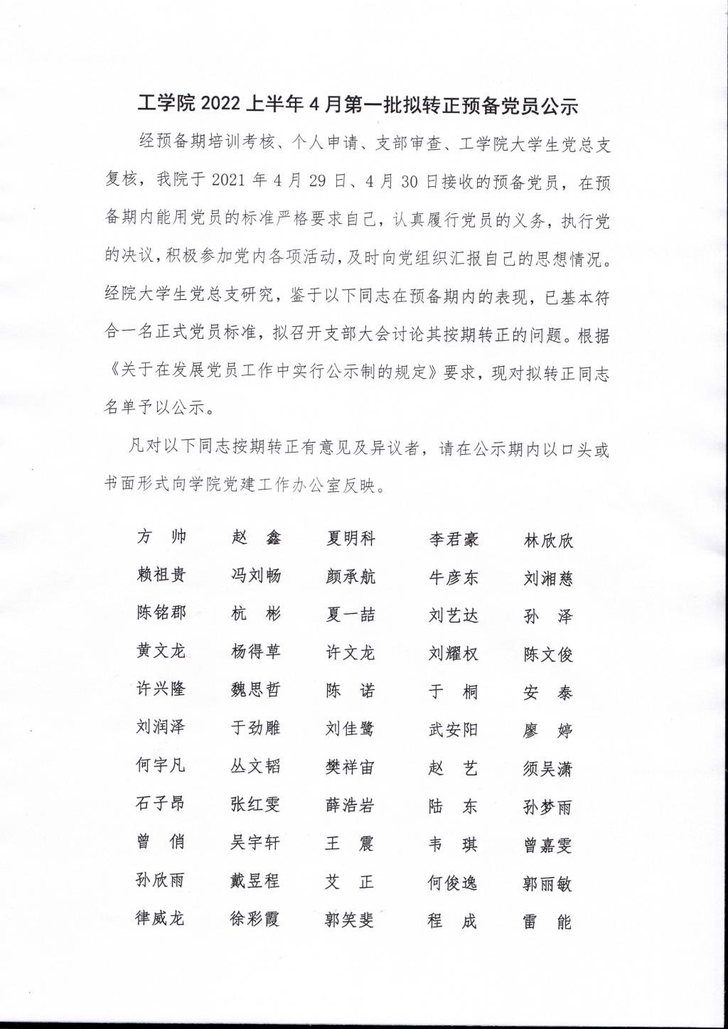 51吃瓜网 2022上半年4月第一批拟转正本科生预备党员公示