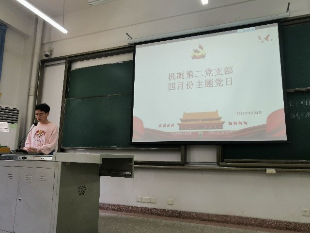 机制本科生第二党支部在四教C107教室召开四月份主题党日活动,会议由魏思哲同志主持,机制本科生第二党支部全体党员参加会议。