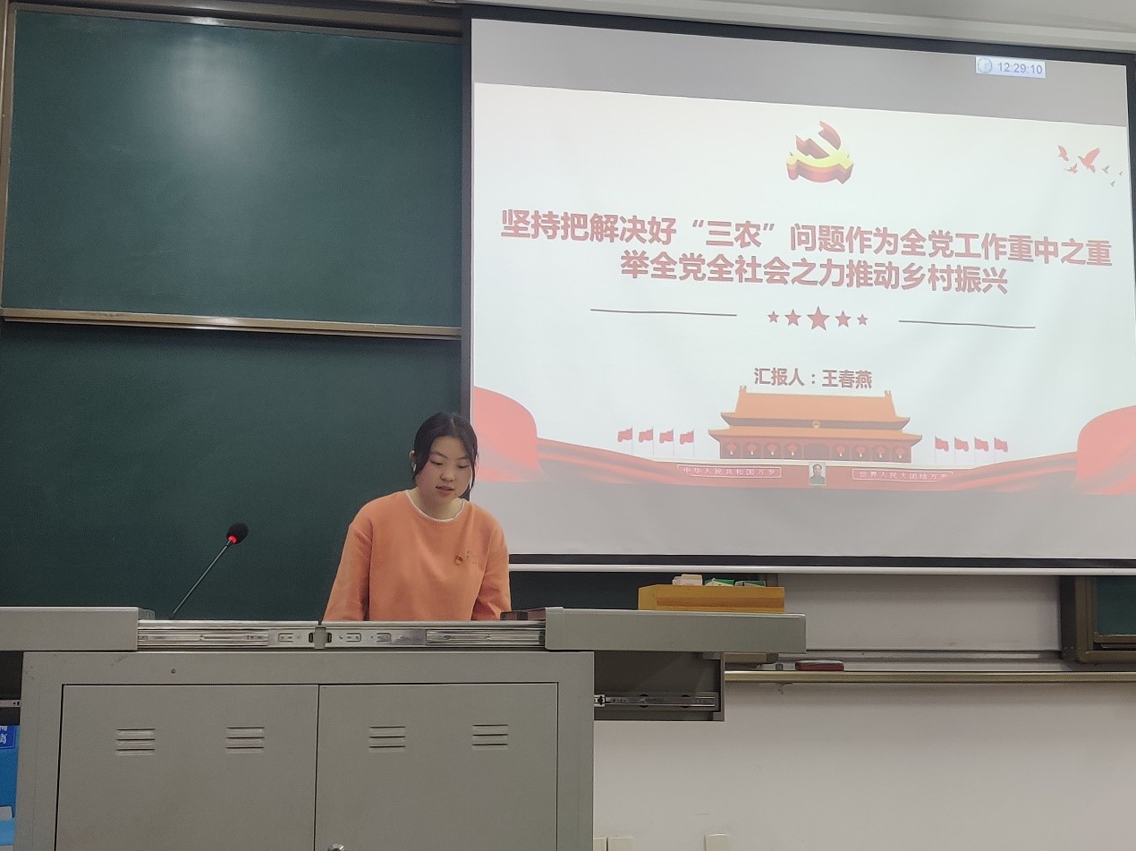 随后,王春燕同志带领大家学习了习近平总书记关于“三农”工作的重要讲话。习总书记强调,要坚持把解决好“三农”问题作为全党工作重中之重,举全党全社会之力推动乡村振兴。在学习中,党员们深刻意识到加快农村发展,要紧紧抓住发展现代农业、增加农民收入、建设社会主义新农村三大任务,抓紧谋划全面推进乡村振兴,做好巩固拓展脱贫攻坚成果同乡村振兴有效衔接,抓好粮食和重要农副产品生产供给,加快发展乡村产业,夯实现代农业发展基础支撑,坚决打好种业翻身仗,全面启动乡村建设行动,推进县域内城乡融合发展,加强和改进乡村治理,强化组织领导,确保实现“十四五”的良好开局。