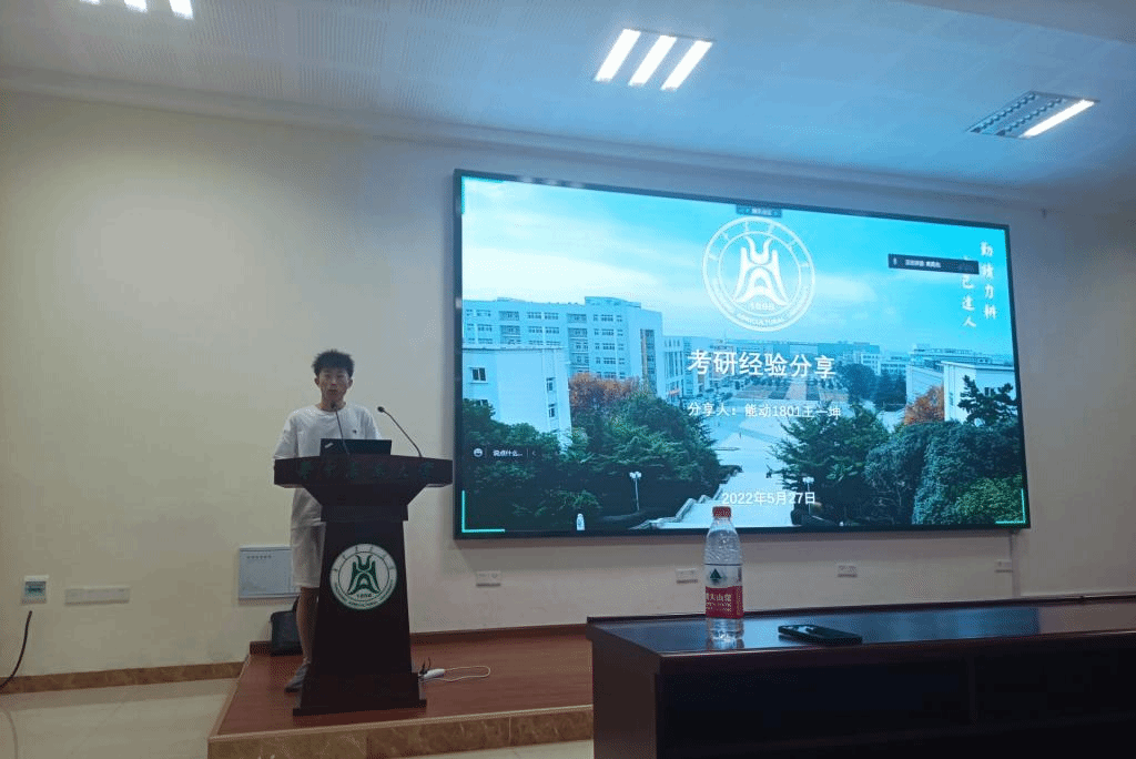 王一坤同学通过自己高分考取本校硕士研究生的经历为同学们从初期准备、科目管理、时间规划和注意事项四个方面详细介绍了自己的考研经验,干货满满。考取华中科技大学的王国程同学告诉大家:“考研并不难,难点在于自觉”,同时给大家分享了考研过程中目标的确定、心态的调整、学习进度的规划等方面的经验,重点强调了考研是场信息战,并提醒同学们去芜存菁,及时筛选出对自己有用的信息。“当你觉得很累的时候,说明你正在走上坡路,”赵晓静同学分享了自己考取中国农业大学的经历,详细介绍了考研资料获取、时间进度、课程复习等方面的经验,“建议同学们注意身体健康、保持积极心态,才能应对随考研而来的风险和挑战,”赵晓静同学说道。考取中南大学的邓伟其同学表示,选择一所适合自己的学校有时候比努力更重要,并从院校选择、专业课、英语、政治复习方法上进行了具体介绍并分享了宝贵的经验。