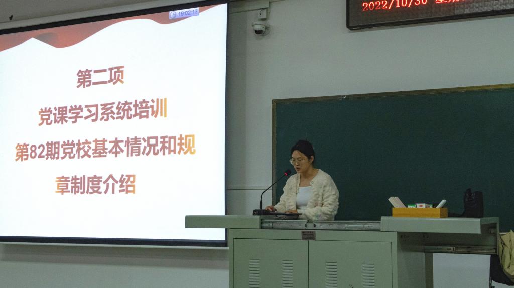 党校部负责人杜彩霞向大家介绍了党课培训的目的及相关学习考核制度。她强调,每名学员都能珍惜宝贵的党课学习机会,严格要求自己,严肃课堂纪律,认真学习党的相关理论知识,努力提升个人党性素养,尽快加入党组织。