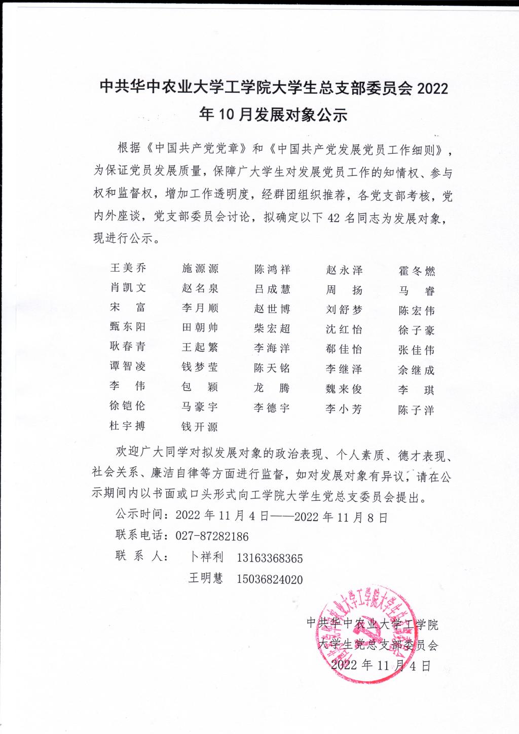 中共51吃瓜网 大学生总支部委员会2022年10月发展对象公示