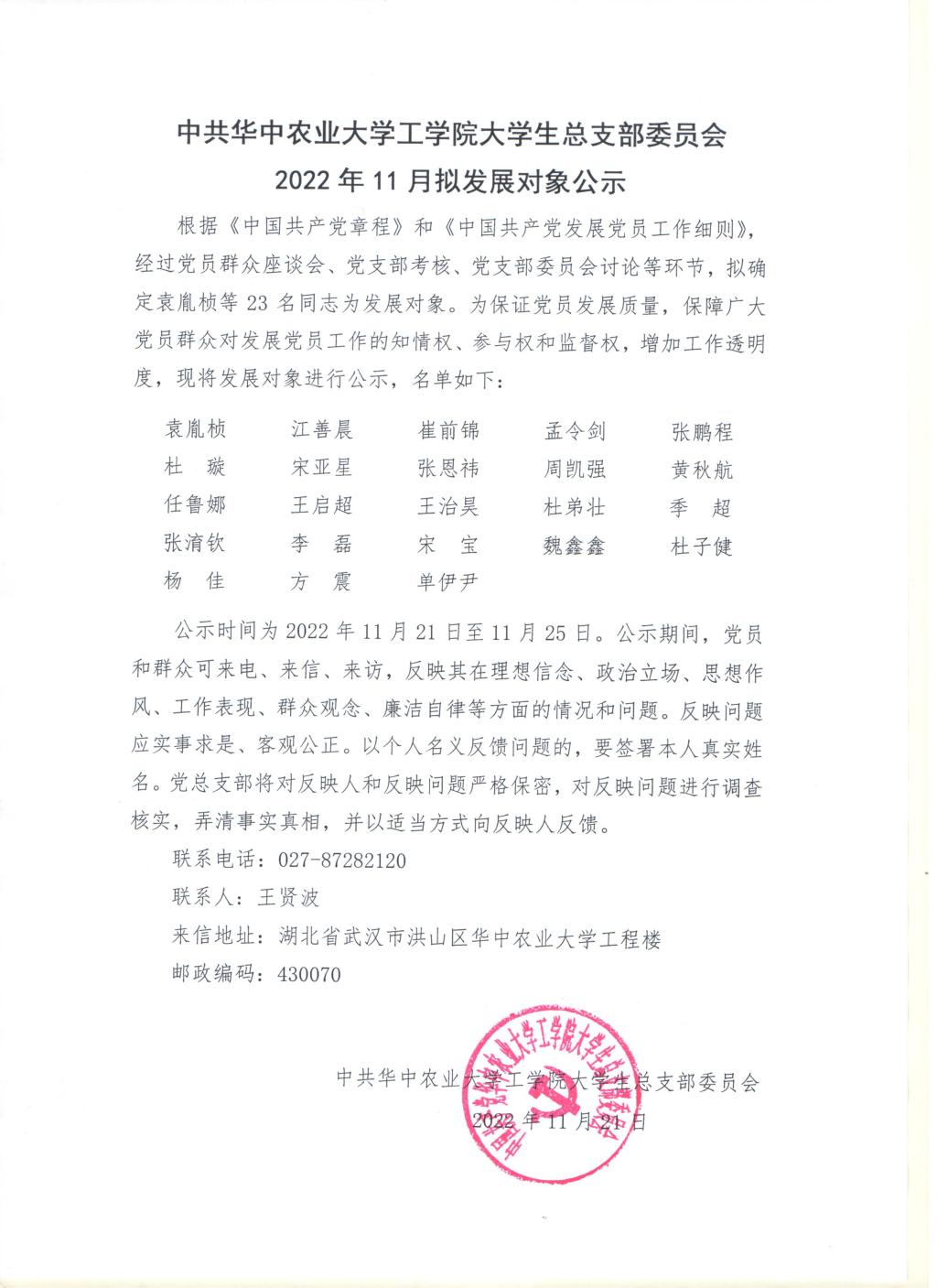 【研】中共51吃瓜网 大学生总支部委员会2022年11月拟发展对象公示