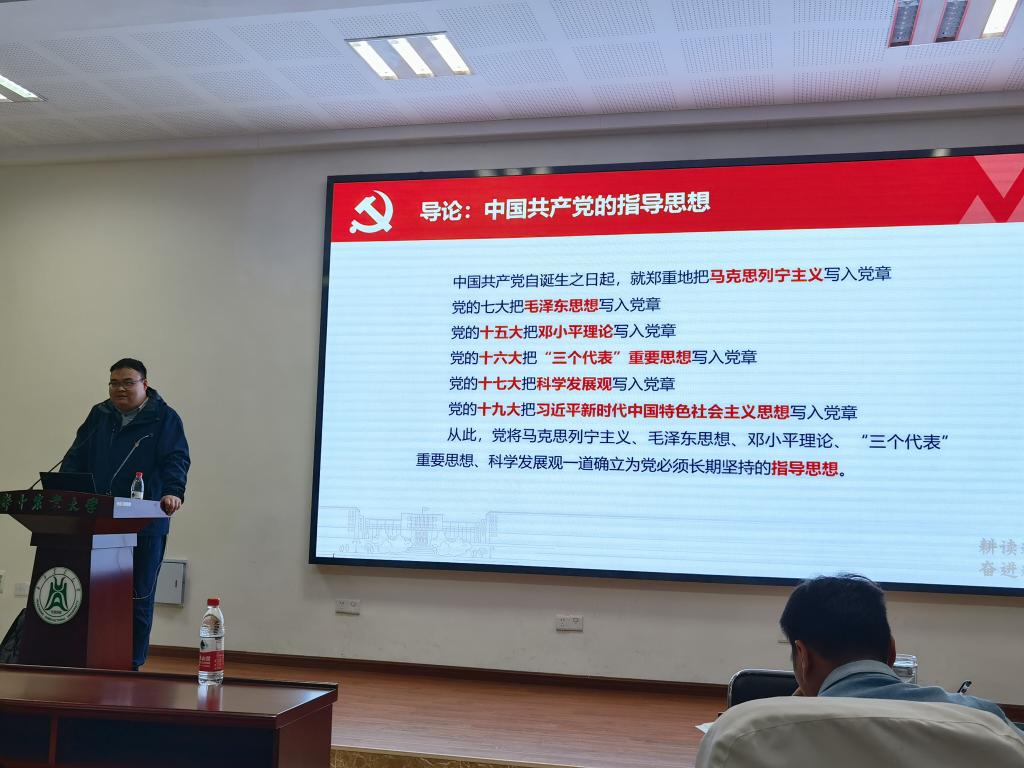 第82期党校第三次线下党课在工程楼A111举行,由动物科学技术学院、动物医学院辅导员谭力铭老师为党校学员授课。本次课程的主题为“中国共产党的指导思想”。