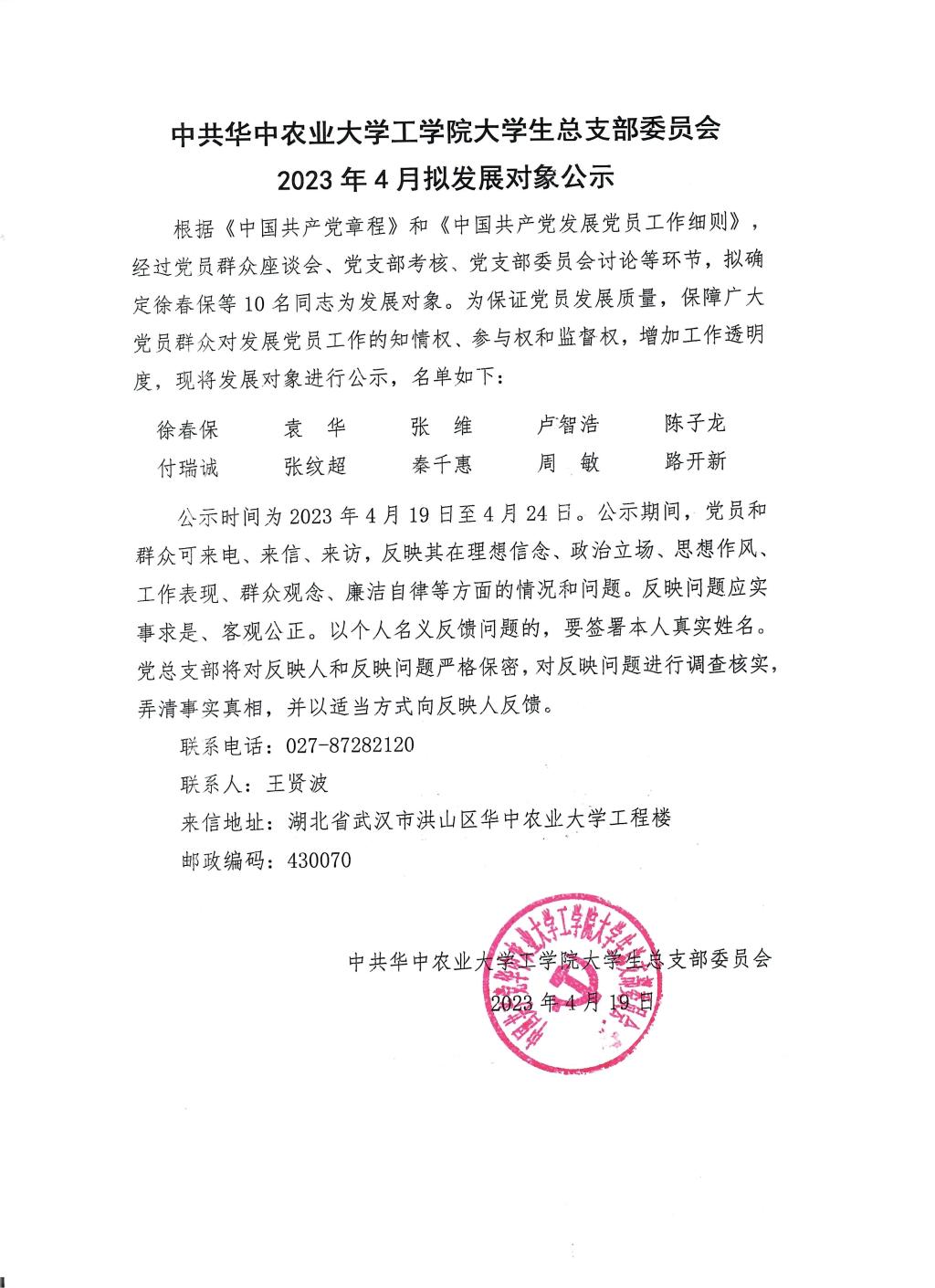 中共51吃瓜网 大学生总支部委员会2023年4月拟发展对象公示