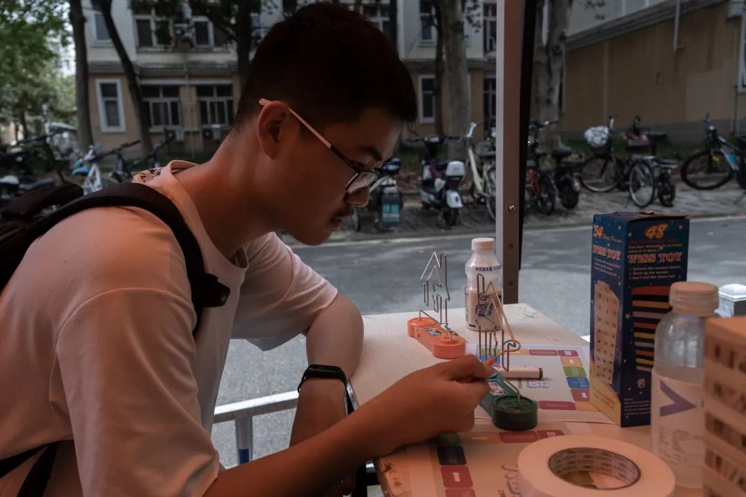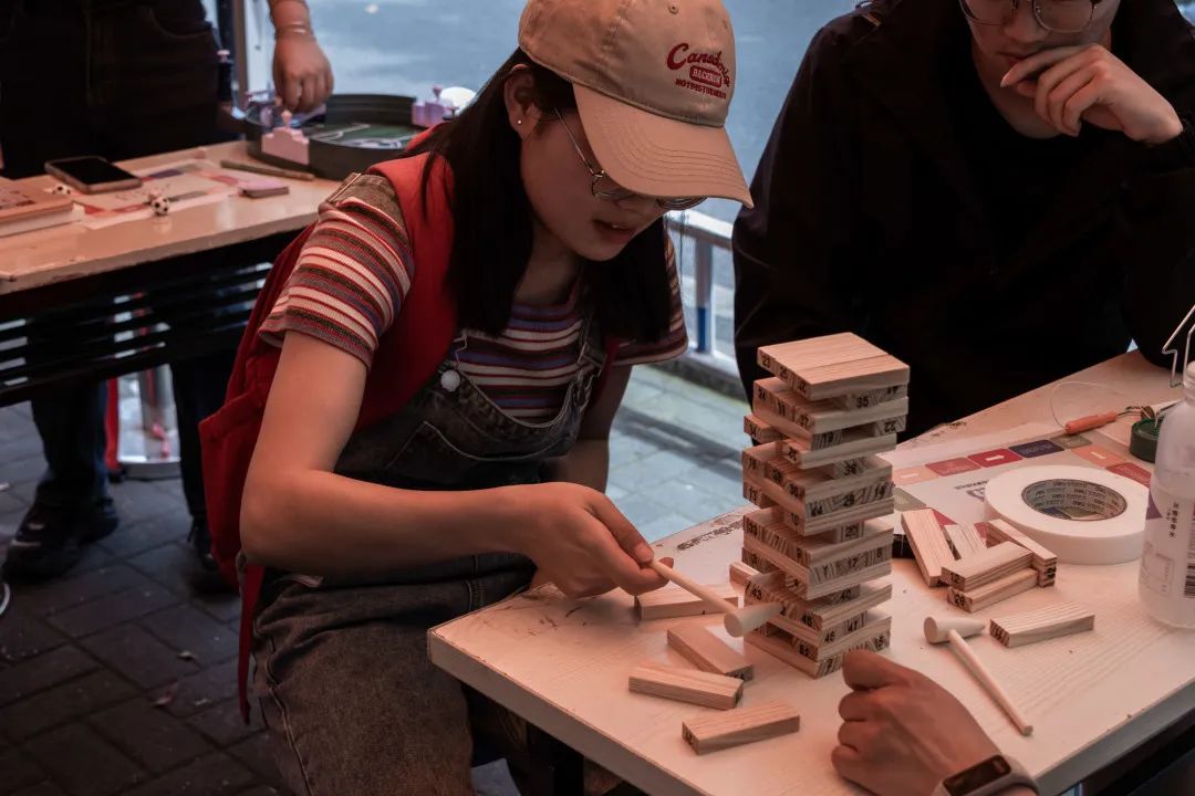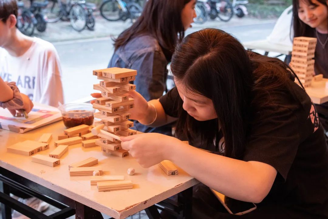 而“战况”最为焦灼要数积木游戏了,同学们小心翼翼堆起的高塔在一次次取木块中变得岌岌可危,最终“呼啦”一声,塔不堪重负倒了,迎来大家一阵唏嘘。放眼望去,此时的活动场地上,有全神贯注攻克华容道的同学,也有颤颤巍巍挑战穿越火线的同学,还有同学挑战烧脑的数独,空气里弥漫着语笑喧阗。各式各样的挑战都给同学带来快乐的体验和难忘的回忆。参与的同学们大多完成了挑战,获得了相应的积分,兑换到了心仪的奖品。