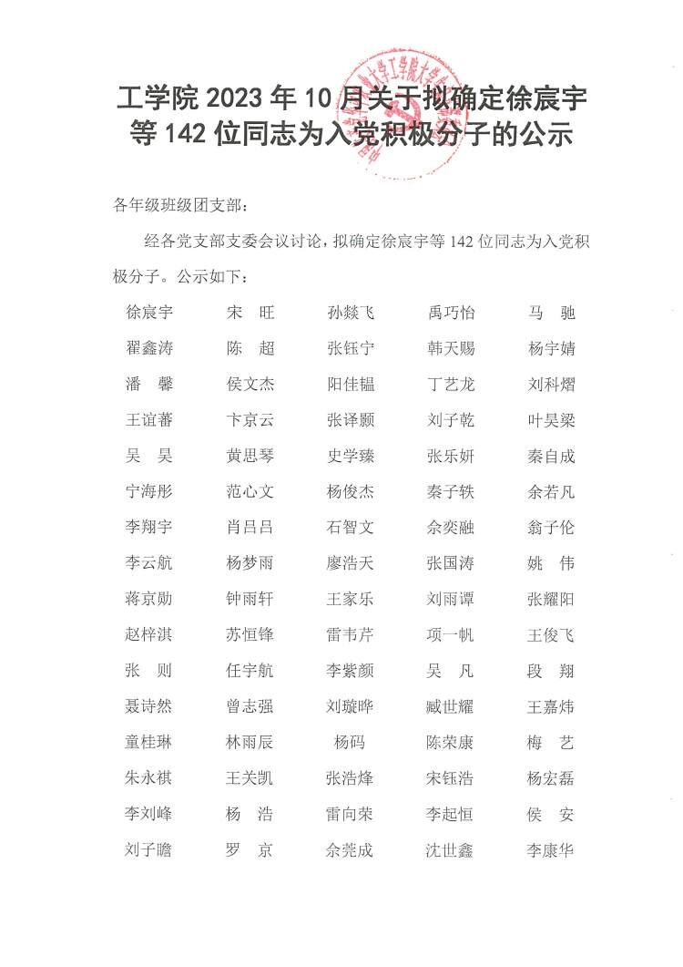 51吃瓜网 2023年10月关于拟确定徐宸宇等142位同志为入党积极分子的公示