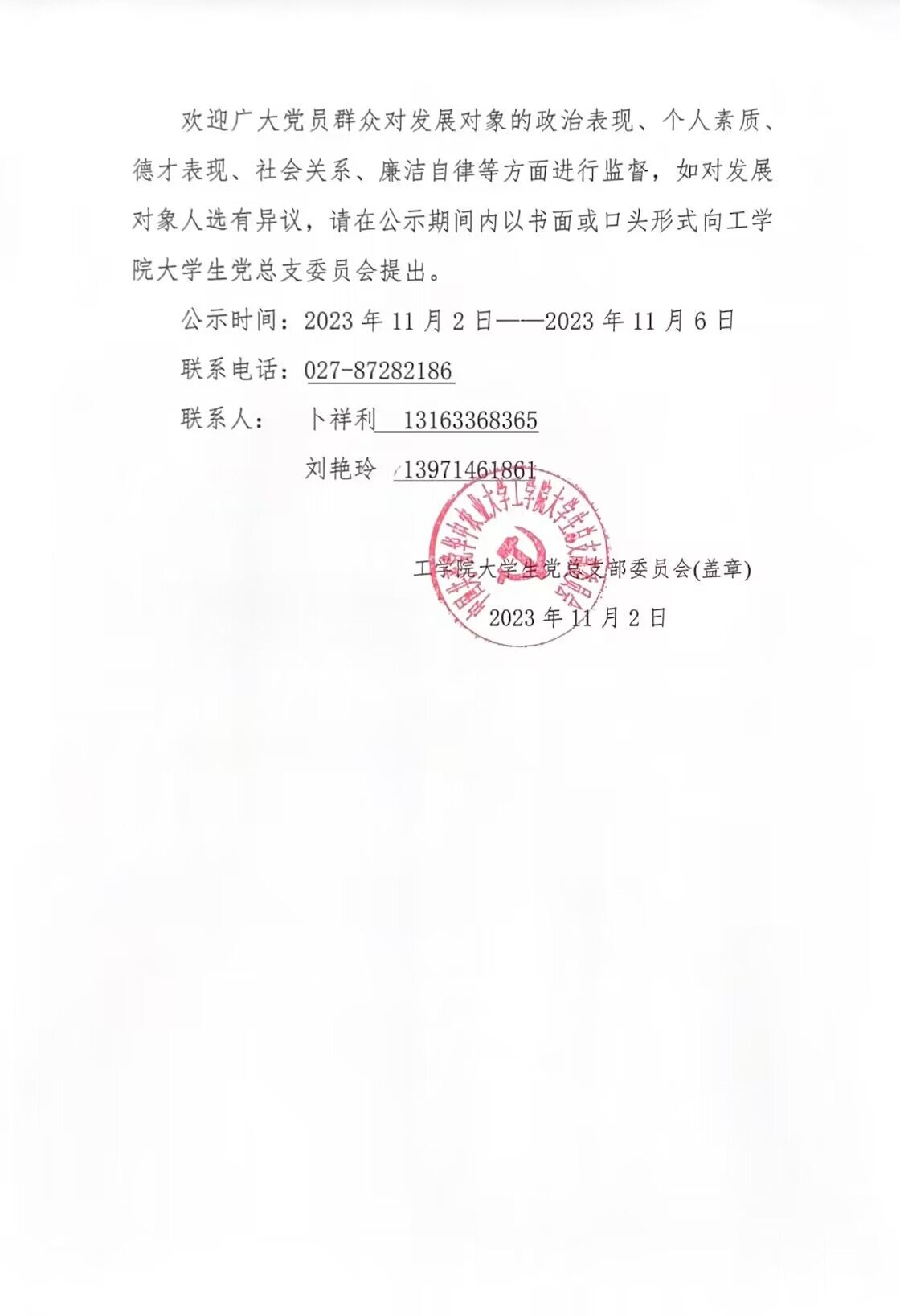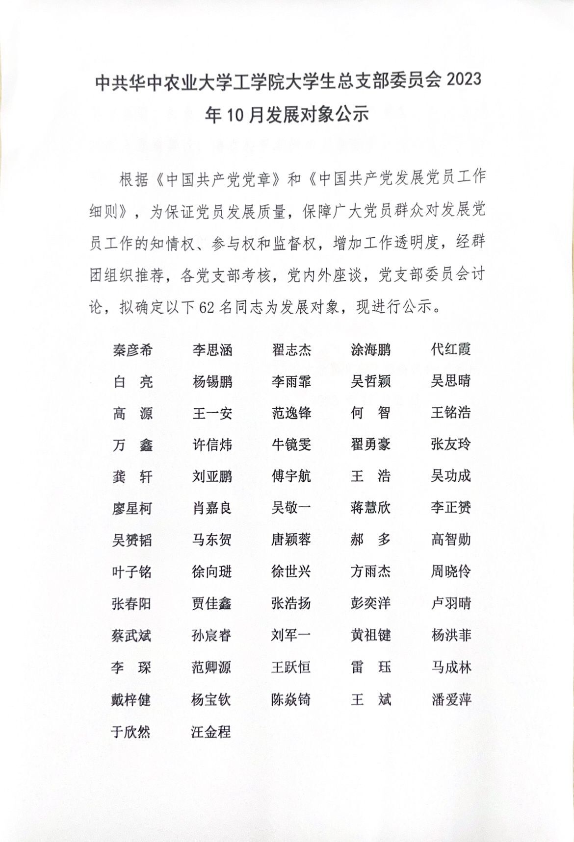 中共51吃瓜网 大学生总支部委员会2023年10月发展对象公示
