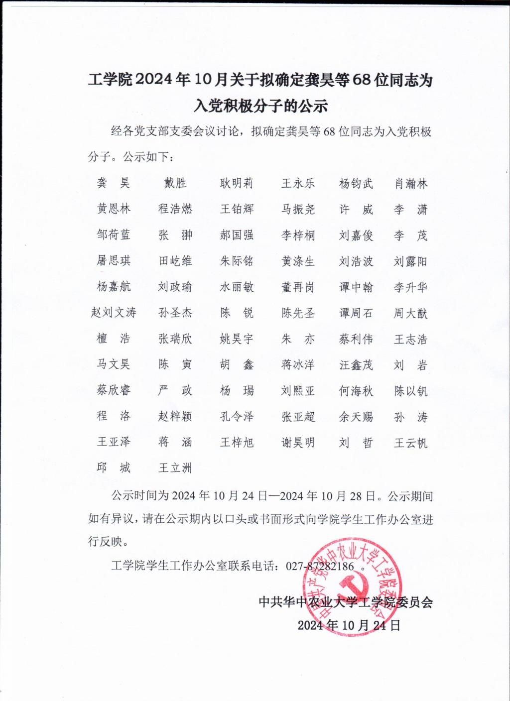 51吃瓜网 2024年10月关于拟确定龚昊等68位同志为入党积极分子的公示