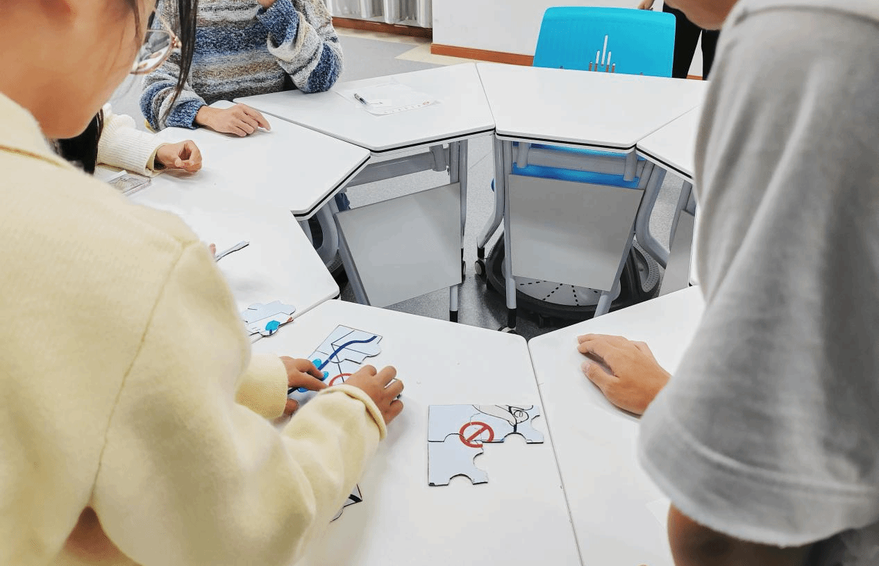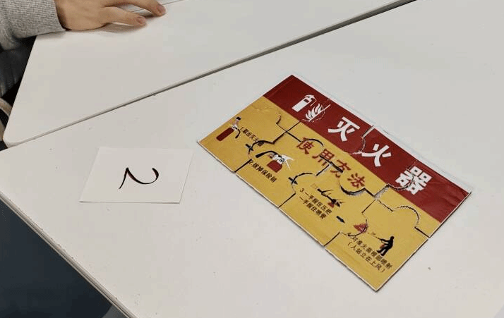 在接下来的消防拼图比赛中,各小组通过抽签拿到精心准备好的消防知识拼图,迅速投入到紧张的比赛。小组成员们相互协作,你一言我一语地讨论着拼图的位置和顺序,大家齐心协力,都为了第一个完成拼图而努力。在这个过程中,团队合作精神得到了充分的彰显,对消防安全知识的储备能力也在无形中得到了提升。最终,第一个完成拼图的二号小组获胜并获得积分。
