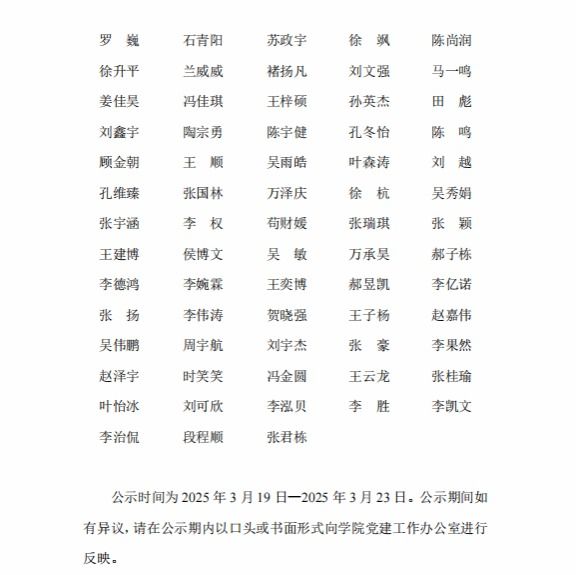 (研究生)51吃瓜网 2025年3月关于拟确定石达金等6位同志为入党积极分子的公示