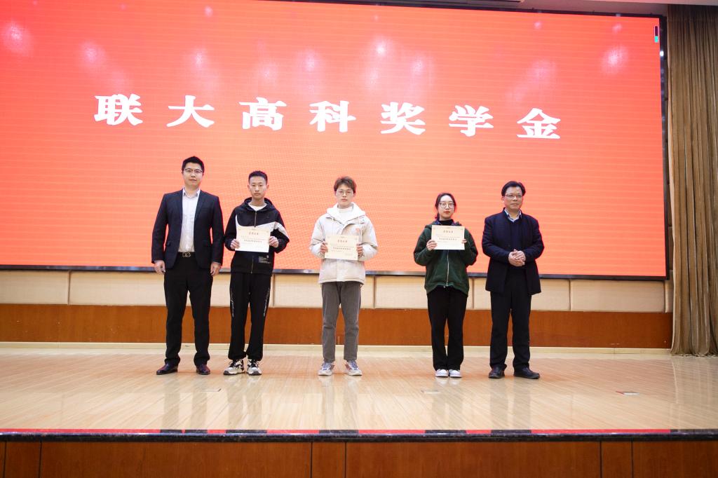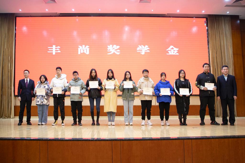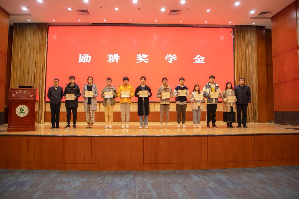 党委书记明庭庆等学院领导与学院企业奖学金捐赠单位负责人为获得“华扬动保奖学金”“丰尚奖学金”“联大高科奖学金”“励耕奖学金”“凤凰天谷奖学金”的130余名同学进行了颁奖。