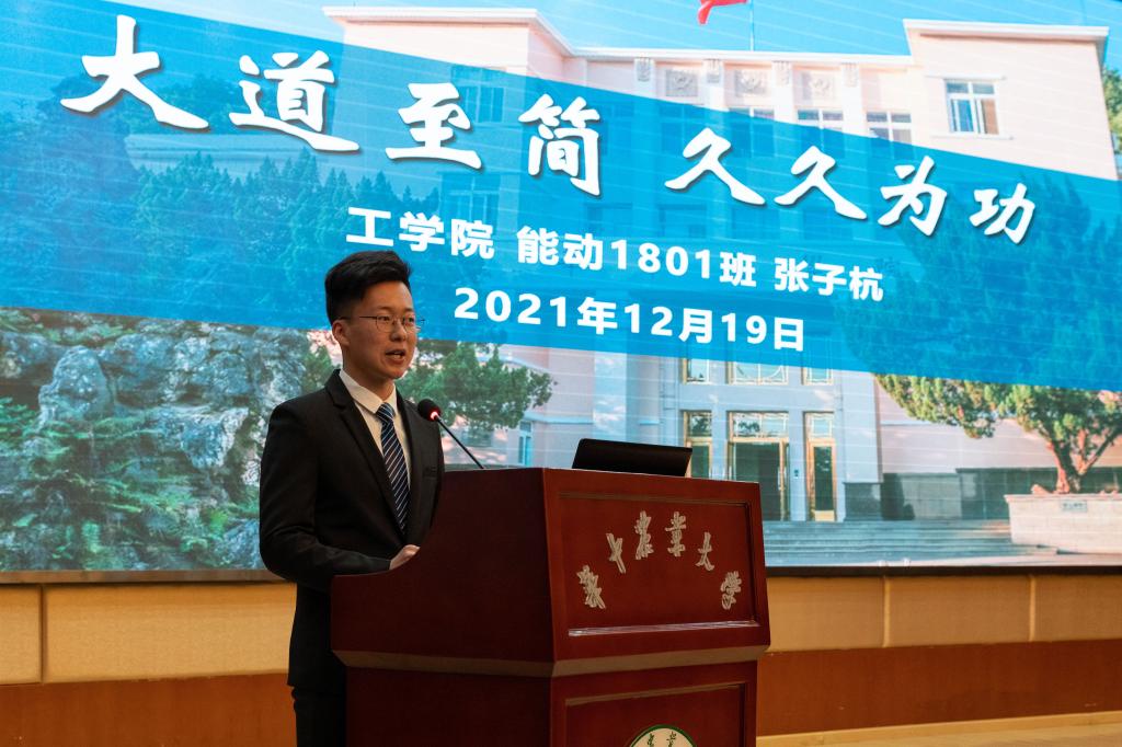 十大标兵获得者能动1801班张子杭同学从学习、科研和学生工作三方面分享他在华农三年的成长经历和感悟。在学习上,课堂专注、课后巩固、及时整理、勤于总结的好习惯让他获得了43门课程满绩点,并多次获得国家奖学金和学习成绩优秀奖;在科研上,他从科研小白一步步探索,虽然科研之路漫长且艰难,但他不畏困难,奋勇向前,以第一作者发表发表SCI论文1篇,申请国家发明专利7项(其中4项已授权),8次参加课外科创竞赛并获奖,正是他努力的成果。同时张子杭躬行实践,乐于奉献,积极参加志愿服务和学生工作,在实践中磨炼自己,在奉献中提升自己。他用始终如一的行动,诠释着笃志好学的态度,用热情与汗水,书写他的华农时光。