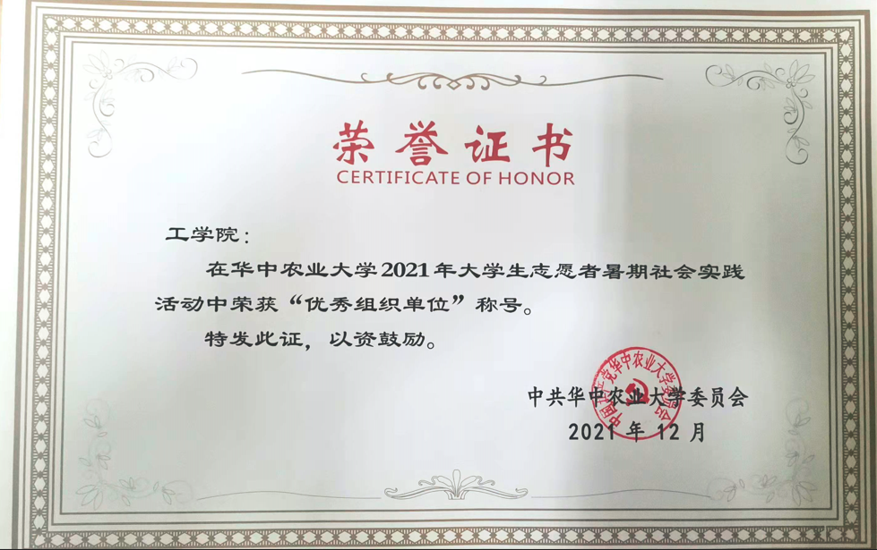 2021年暑期社会实践活动“优秀组织单位”,全校一共6个单位获得此项荣誉。周熙获评“优秀指导老师”,王凤武获评“先进工作者”,牛彦东等10名同学获评“先进个人”,学院赴湖南省韶山市党员暑期实践团和赴湖北省荆州市暑期社会实践团等2支团队获评“优秀团队”称号。