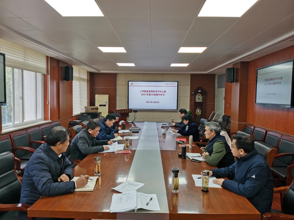 党委理论学习中心组在工程楼A201会议室集中学习研讨十九届六中全会精神。党委书记明庭庆做专题学习报告。