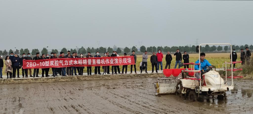 水稻生产机械化团队赴孝感市参加再生稻技术培训“田间日”活动,现场演示了团队研制的双通道再生稻收割机和双腔气力式水稻精量直播机,并邀请种植大户对田间作业性能进行了评估。