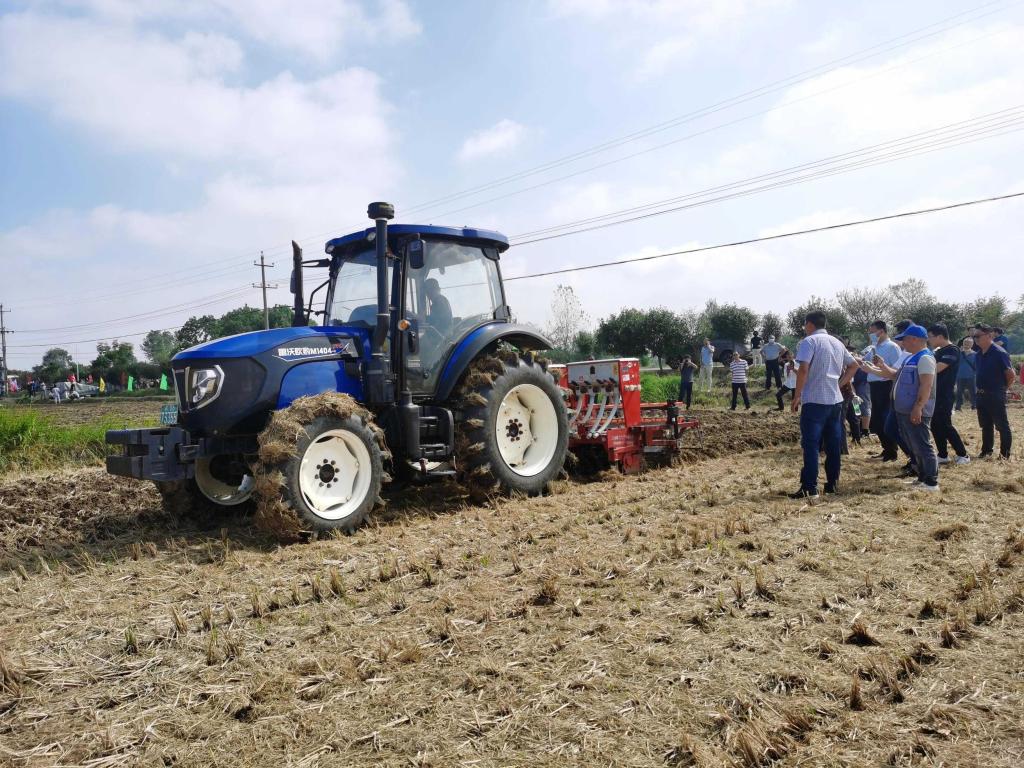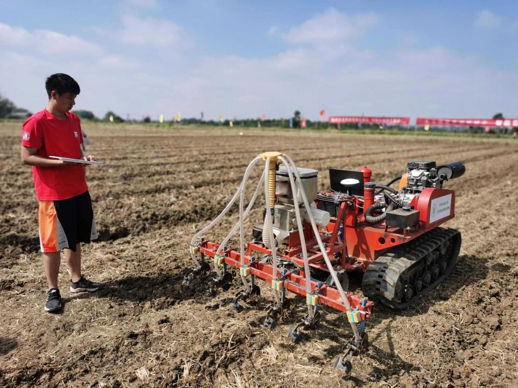 的几名研究生手拿键盘,操作一台大型无人油菜直播机,走线平直、速度均衡,易转弯、效率高,令在场的乡亲们齐声叫好。