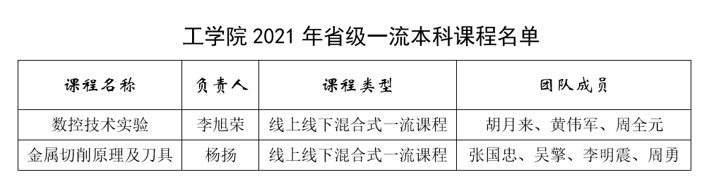 组织申报的《数控技术实验》和《金属切削原理及刀具》被认定为2021年省级一流本科课程。