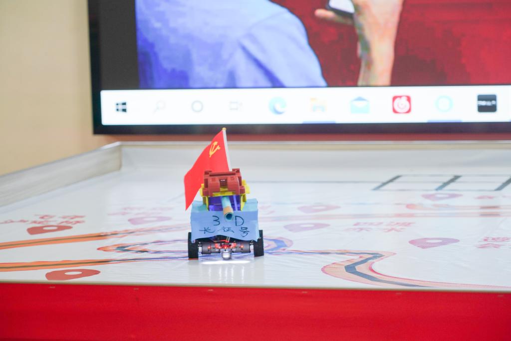 本次比赛以“重走长征路,庚续报国志”为主题,由基于单片机的智能循迹小车竞速赛和党史知识竞答赛两个环节组成。尤为引人注目的是,今年的竞速赛道还原了红军长征路线,16支专业组和7支创意组选手带来的23辆智能小车,经过组装、调试和修正后,以迅捷的速度、准确的识别与灵活的反应沿赛道竞速比拼,串联起血战湘江、遵义会议、四渡赤水、强渡大渡河、会宁会师等党的历史上的重要事件,参赛选手围绕这些关键的历史节点展开了知识问答,出色的表现赢得了现场观众的阵阵掌声。